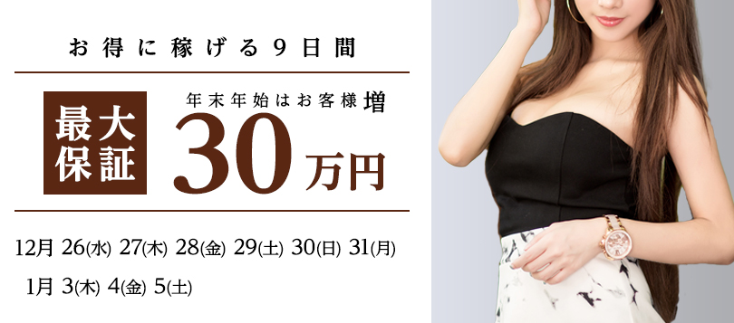 丸妻汁横浜本店では、年末年始に頑張ってくれる女性には最大保証30万円をご用意しました。