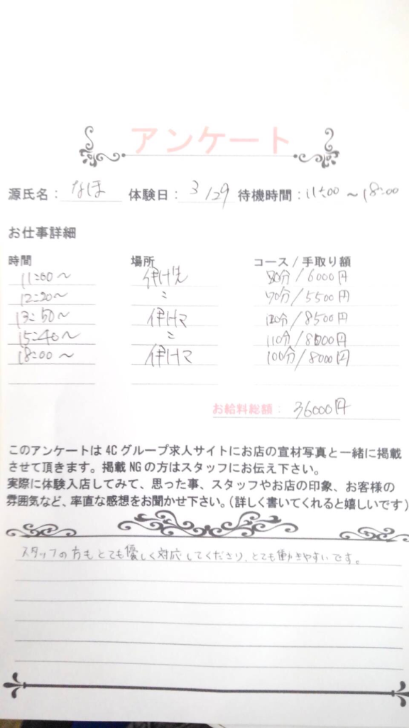 上記の画像は2022年3、4月に入店いただいた女性の直筆アンケートです♪