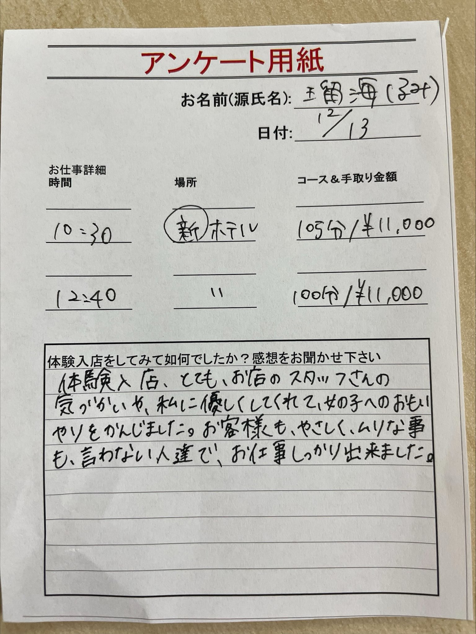 - ■体験入店日:2023/12/13