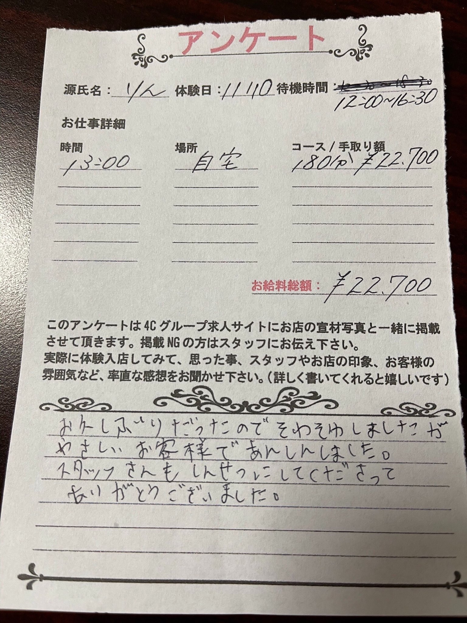 - ■体験入店のお給料: 22,700円
